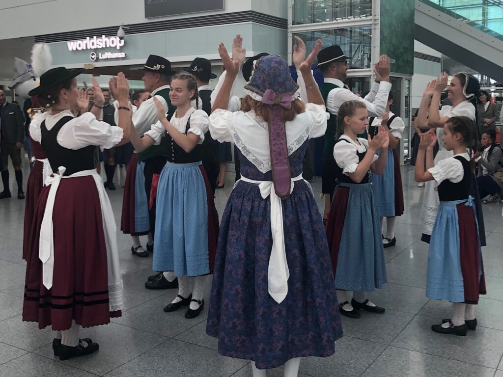 Am 18.09. durften wir gemeinsam mit unserem Gauverband einen besonderen Auftritt am Flughafen München gestalten. Anlass war der Besuch von Ministerin Kaniber, die um 10 Uhr eintraf. Inmitten des bunten Programms konnten wir unsere Tänze präsentieren und ein Stück bayerische Tradition in den Flughafenalltag bringen.
